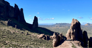 Hike Description: This charming hike takes us up to strange rocks formations and excellent views. Some of the path is rocky with a few areas short areas we will need to scramble over. The steep section of rocks has good grip. On the way down we will see lots of saguaro and tall chain fruit cholla. The views are worth the drive out to the Superstitions and the inconvenience of the scrambles. Bring a lunch since we are stating late.